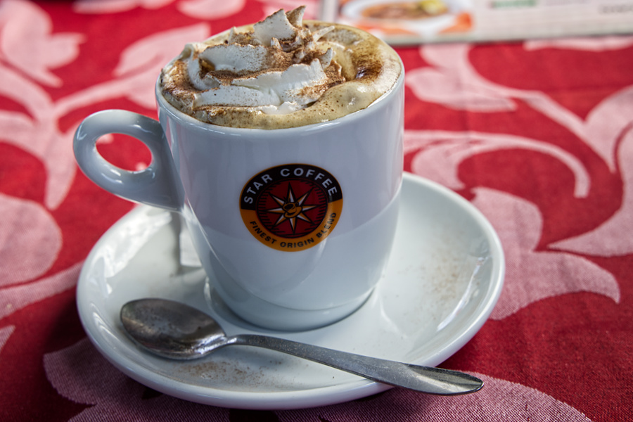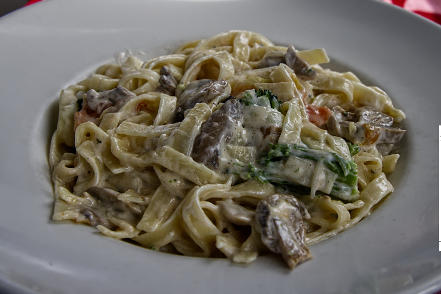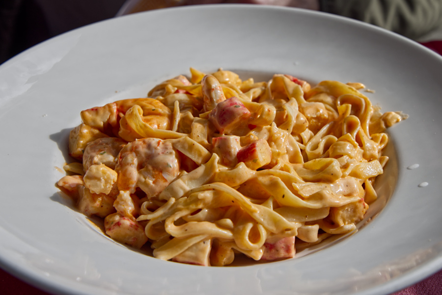 Das italienische Restaurant hat geöffnetr, eigentlich wollten wir nur einen Cappuccino trinken, aber das Nudelangebot war einfach zu verlockend, zumal wir auch hier wieder die einzigen Gäste waren.