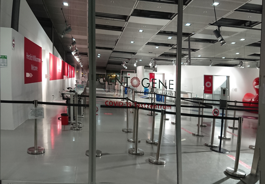 Unterwegs hören wir eine Ansage, die uns verwundert, es seien jetzt alle Bereiche wieder frei zugänglich oder so ähnlich. Nach einer halben Stunde Irrungen und Wirrungen finden wir endlich das Corona Testzentrum, es war doch ganz woanders als ich gedacht hatte. Aber wir hatten Zeit genug, es soll ja erst um 22 Uhr schließen.