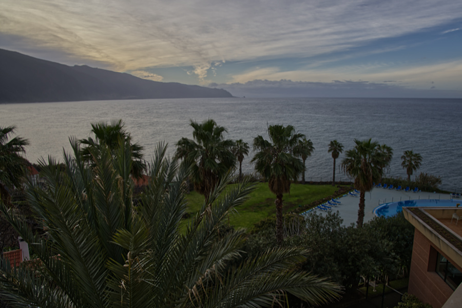 • Nach einer Stunde Fahrtzeit haben wir unser Ziel erreicht. Wir haben das Monte Mar Palace Hotel in Ponta Delgada gebucht. Es liegt ziemlich abgeschieden, aber wir wollten das so. Das Hotel ist etwas in die Jahre gekommen, unser Zimmer liegt in der 4. Etage, wir haben Meerblick und einen Balkon mit Tisch und 2 Stühlen. Das Zimmer selber ist sehr geräumig, die Betten sind riesig, wir haben eine Sitzeckt mit 2 Sesseln, einen Schreibtisch, einen großen Schrank und einen Kühlschrank. Klar natürlich auch W-Lan und einen großen Fernseher.