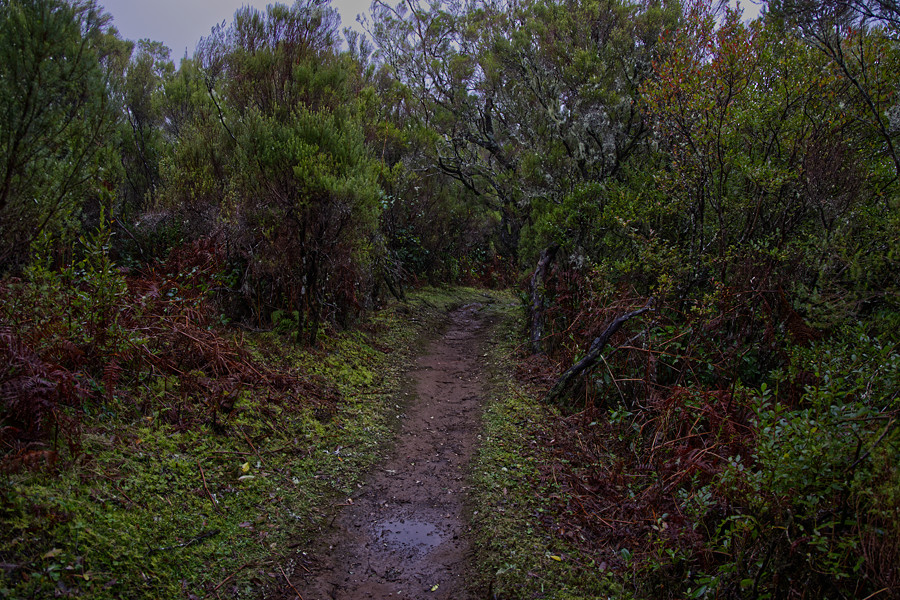 • Von hier aus geht es zurück zum Auto, nun prasselt der Regen wirklich hinunter, nir wenige Male nehme ich den Fotoapparat raus. Dann sind wir am Auto und fahren zurück. Die Punkte, die wir uns auf dem Hinweg nicht angeschaut haben und für die Rückfahrt übrig gelassen haben, verschwinden im Regen und Nebel. Als wir wieder in Potan Delgada angekommen sind. schien hier tatsächlich wieder die Sonne.