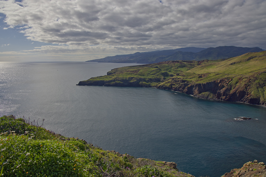 Wir gehen los, es geht rauf und runter, aber es ist gut zu bewältigen. Ich kann ja Pausen machen, wenn ich außer Atem komme. Da ich aber immer wieder neue Fotomotive sehe, kommen wir eh nur langsam voran. Es ist eine wunderschöne Gegend. Beim Anflug habe ich diese Halbinsel ja schon von oben gesehen und gestaunt.