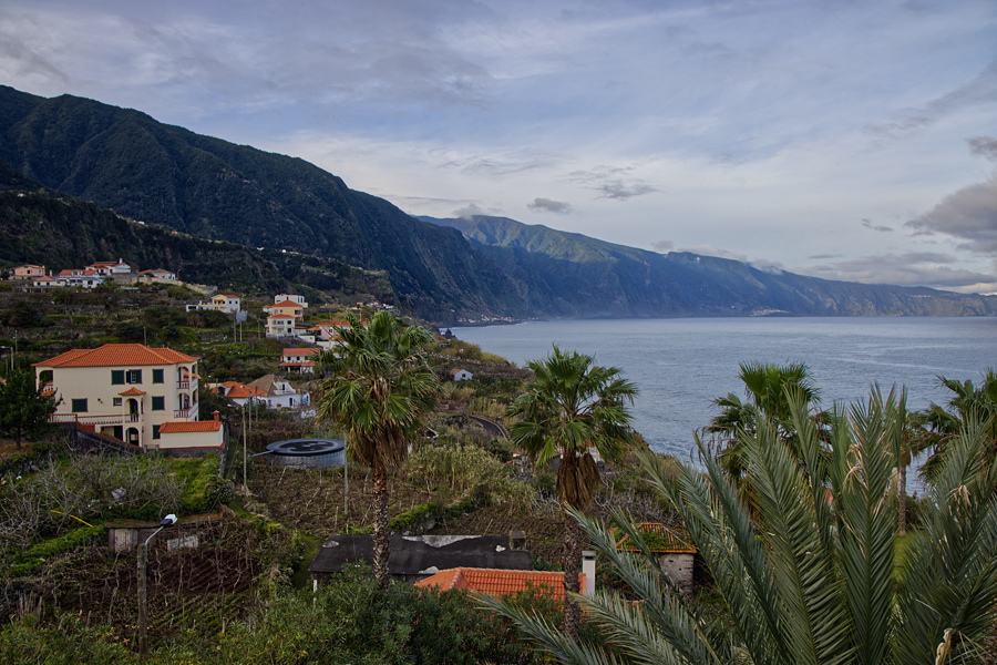 Es ist der 14.1.2021, das Wetter klart auf und wir fahren nach einem langen Frühstück los nach Porto Moniz. Wir stellen das Auto ab und machen einen kleinen Spaziergang. Das Meer ist heute wild, wir stehen am Kai und schauen lange auf die die wogenden Wellen. In den Lavabecken sehen wir einen einsamen Schwimmer. Puhh, mir wäre das zu kalt.