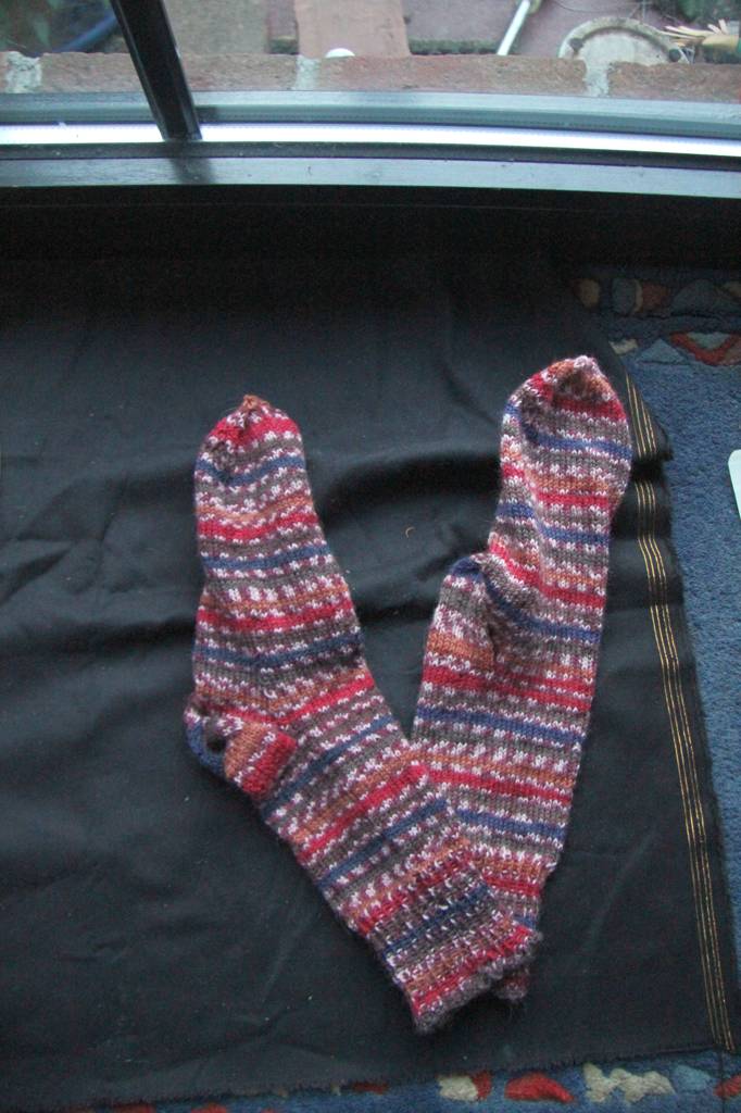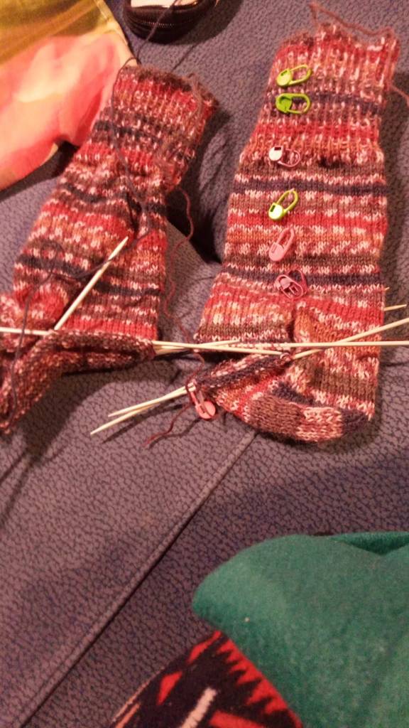 DIe nächsten sind auf der Nadel - diesmal stricke ich parallel... Und nutze Maschenamarkiere, damit beide gleich werden. Diese Wolle ist ja schon toll - sie macht echt schöne Muster, ohne
