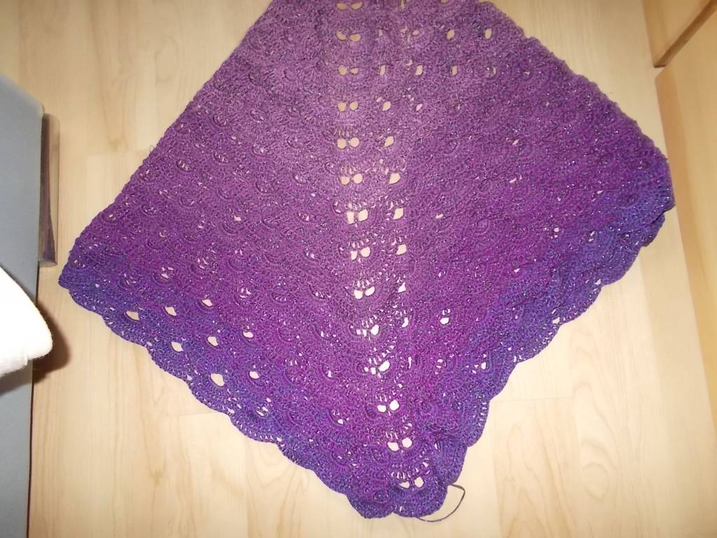 Meine Schwägerin hat ihr Tuch an die Schwiegertochter verschenkt und braucht nun ein Neues,die Farbe wurde von ihr gewünscht,es ist noch nicht gebadet und gespannt.Sie spannt es selber,also ist es auf Reisen gegangen.Habe 980 Meter verhäkelt.