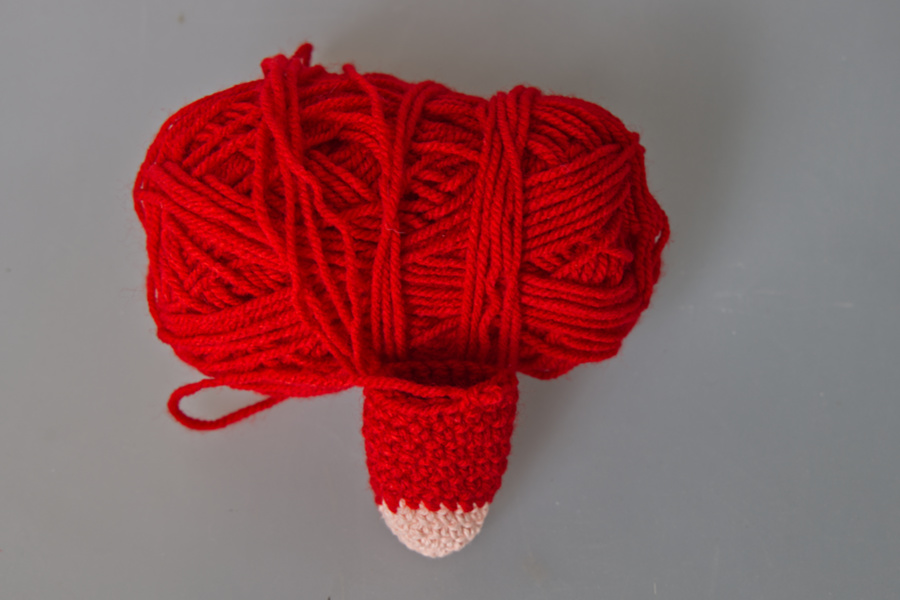 Zum Kopf hin wurden wieder Maschen abgenommen.