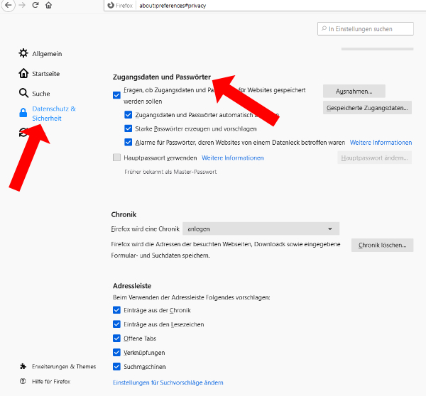 Als Beispiel zeige ich euch, wie man beim Firefox das Speichern und Autovervollständigen von Passwörtern abstellen kann.