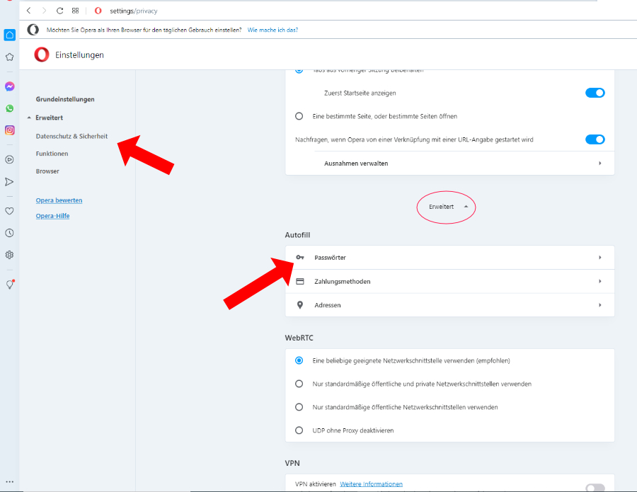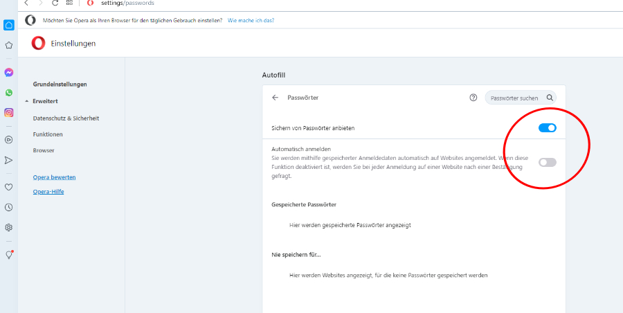 4. Suche die Einstellung Zugangsdaten und Passwörter und ändere dort jenachdem, was man gerne haben möchte. (Bild 2)