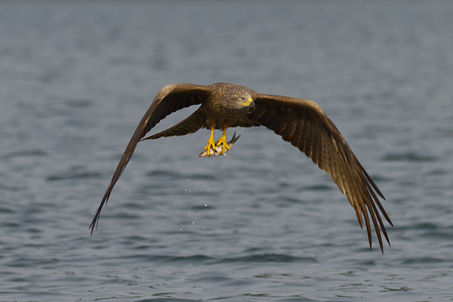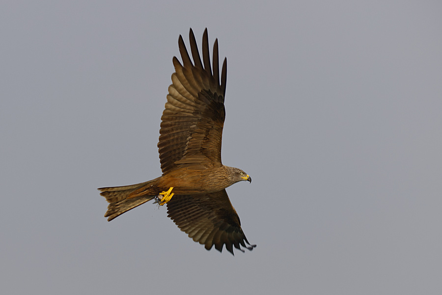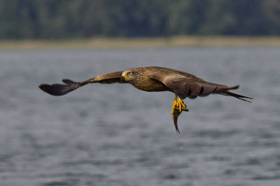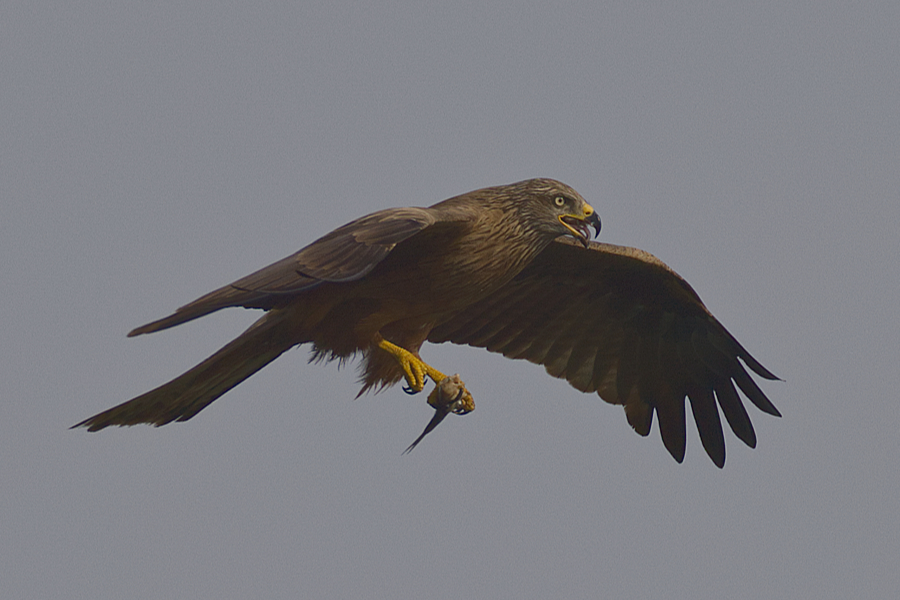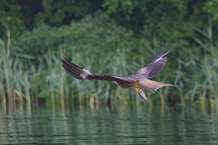 Die Milane waren hungrig und sie fraßen tatsächlich während des Fluges den Fisch auf, wie man auf den Bildern sehen kann.
