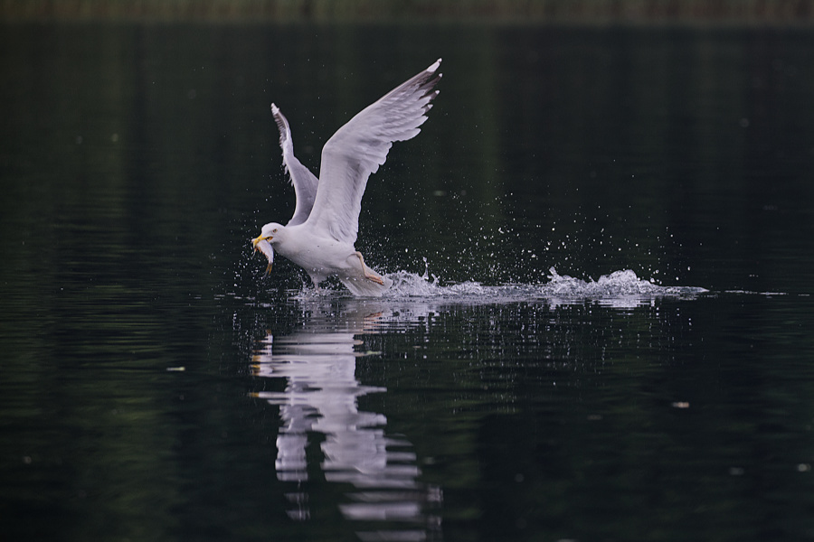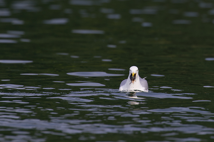 Kommen wir nun zu den Möwen, denn da wo es Fische gibt findet man natürlich auch die Möwen. Manchmal suchen sie sich einen dicken Brocken aus, der eigentlich für einen Milan gedacht war. Oft genug war der Fisch dann doch zu groß, so dass die Möwen ihre Beute wieder fallen lassen. Da ist dann meist pfeilschnell ein Milan zur Stelle und schwupp ist er mit Fisch wieder in der Luft und die Möwe guckt ein wenig irritiert.