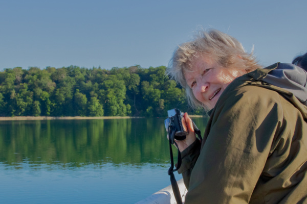 Wir fuhren auf den See hinaus und so richtig tat sich noch nicht viel. Auf einmal wurde es dunkel und der Himmel öffnete seine Schleusen. Oh je, ausgerechnet heute habe ich einfach keinen Schutz mit, weder für mich, noch für fir Kamera oder den Rucksack. Aber ich war nicht die Einzige, die nicht mit dem Regen gerechnet hat. Fred fuhr unter die kleine Brücke und wir warteten eine Weile, das Wasser tropfte nur so von uns runter.