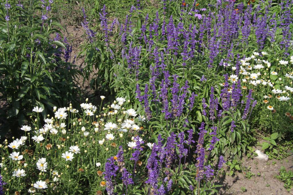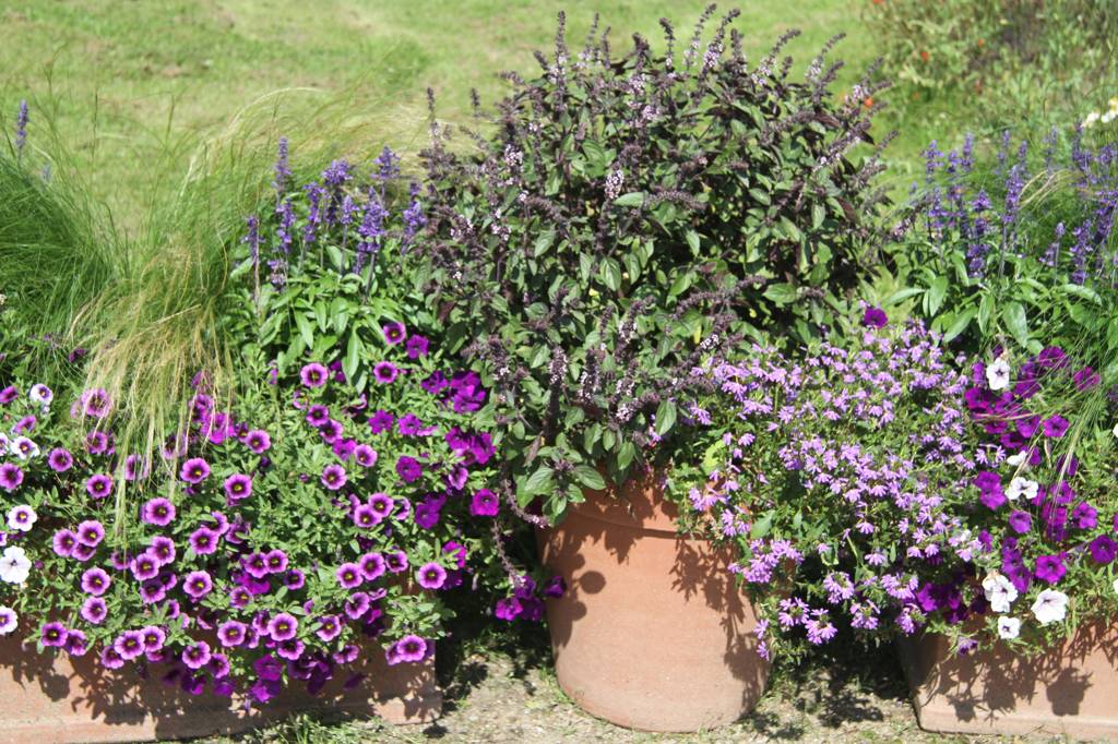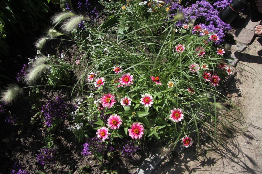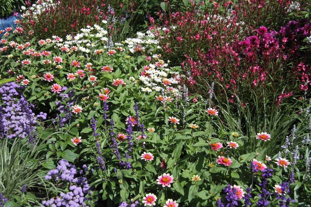 Es folgt der Toskanagarten, und ich finde es wunderbar, dass man Pfefferminze mit Blühpflanzen kombinieren kann. Ich wäre nicht darauf gekommen