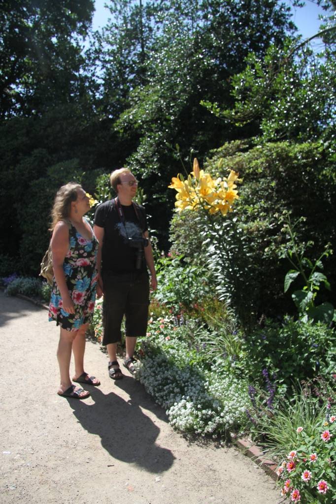 Um eine Vorstellung von der Größe zu bekommen, habe ich meine Parkbegleiter einmal neben eine der Lilien gestellt - der männliche Part misst 1,95 m