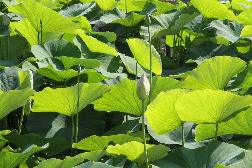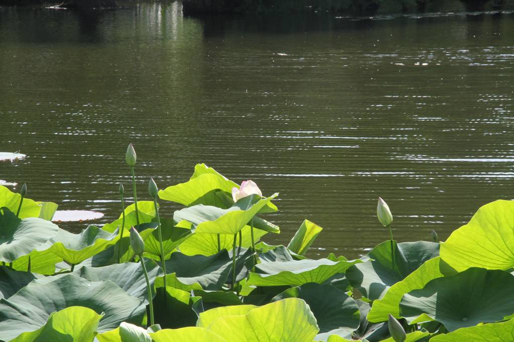 Wir umrunden den See und hier gibt es viele Lotusblüten - leider stehen sie noch am Beginn ihrer Blüte