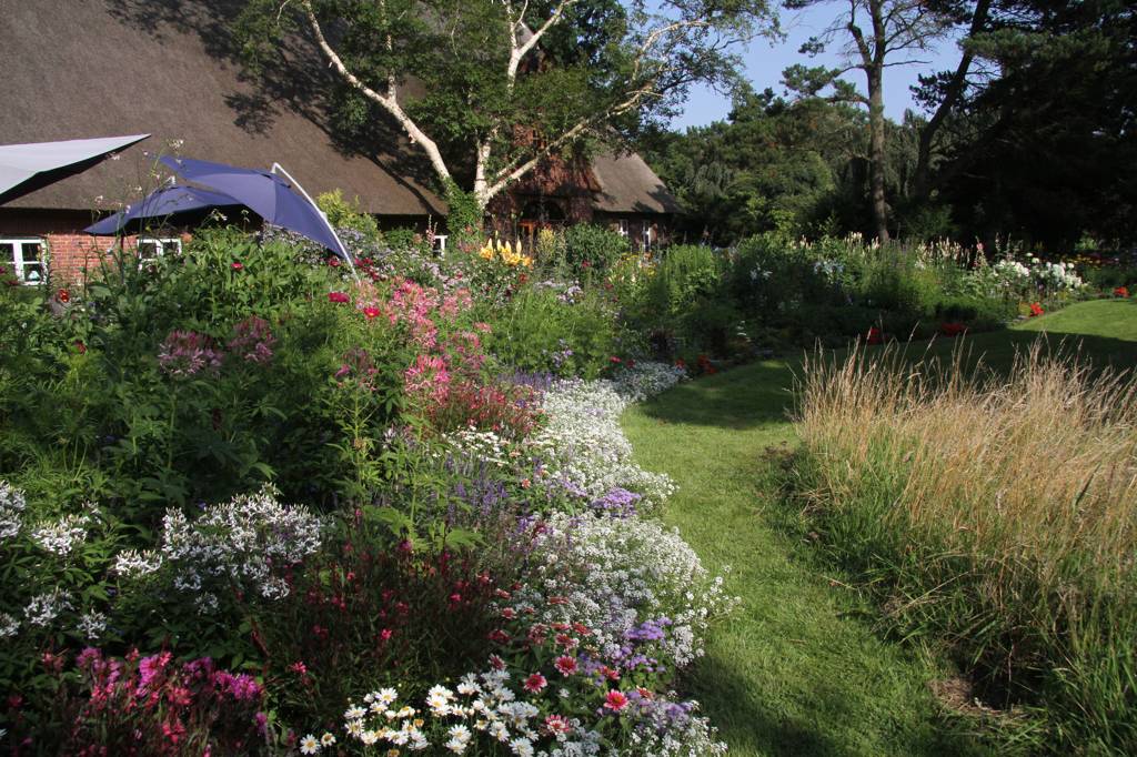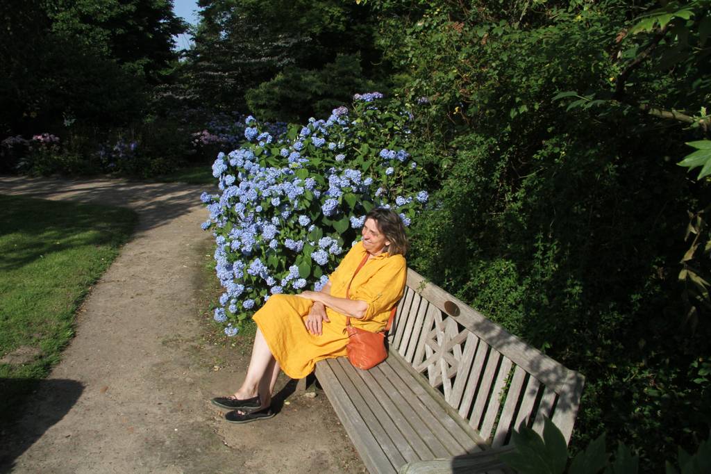 Dieser Gartenbereich wurde der Künstlerin Swantje Warda gewidmet, die wohl zarte Blumenaquarelle malte - in einer anderen Jahreszeit findet man hier auch Pfingstrosen, aber deren Blütezeit ist jetzt vorbei