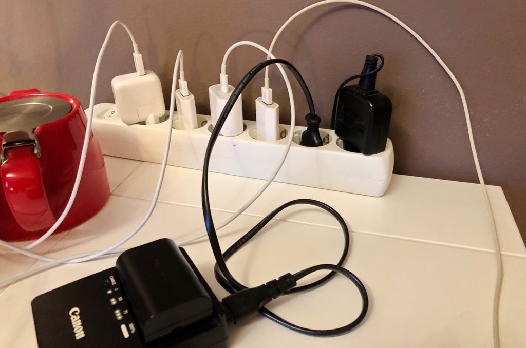 Zum Glück hat die neue Unterkunft genügend Steckdosen.