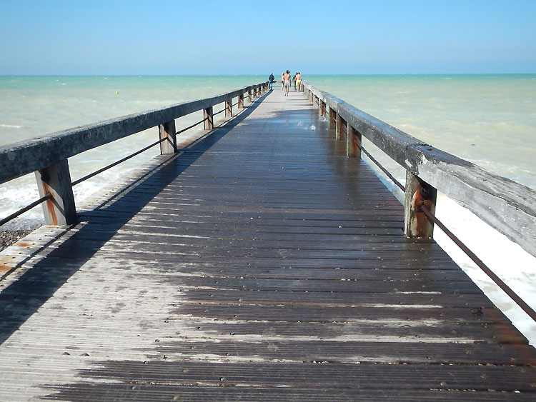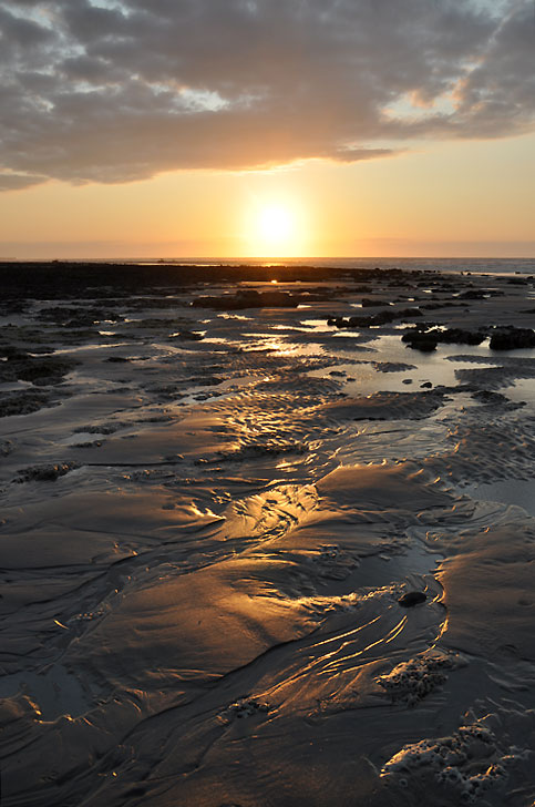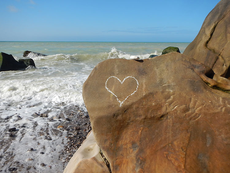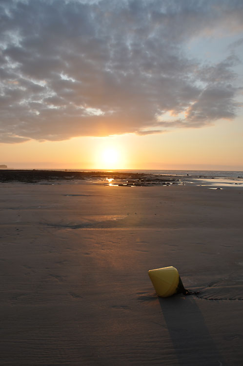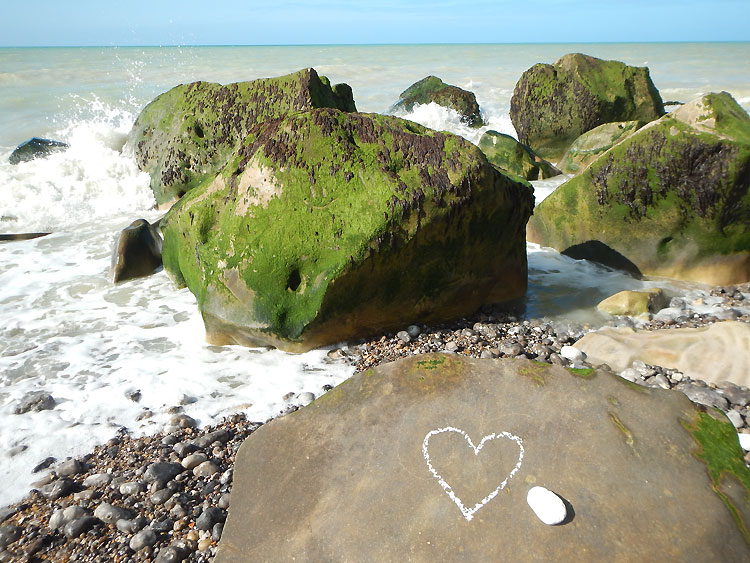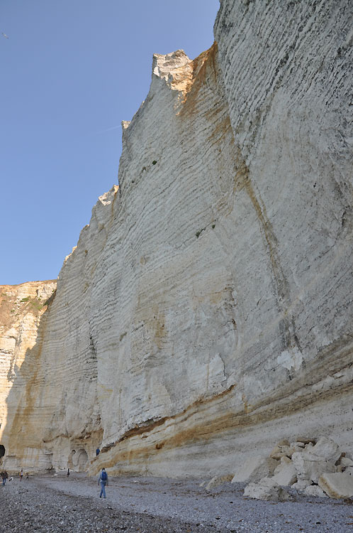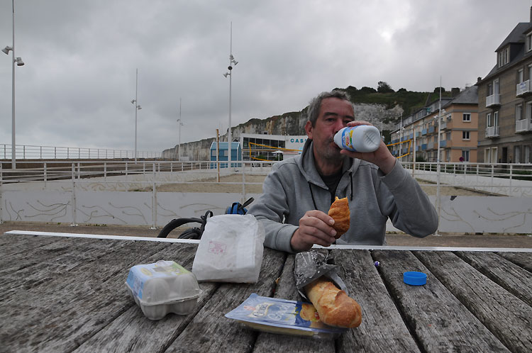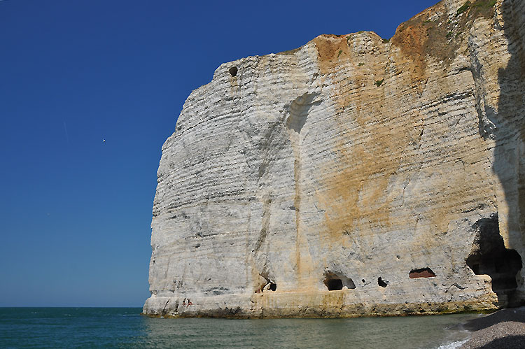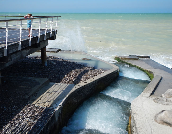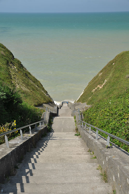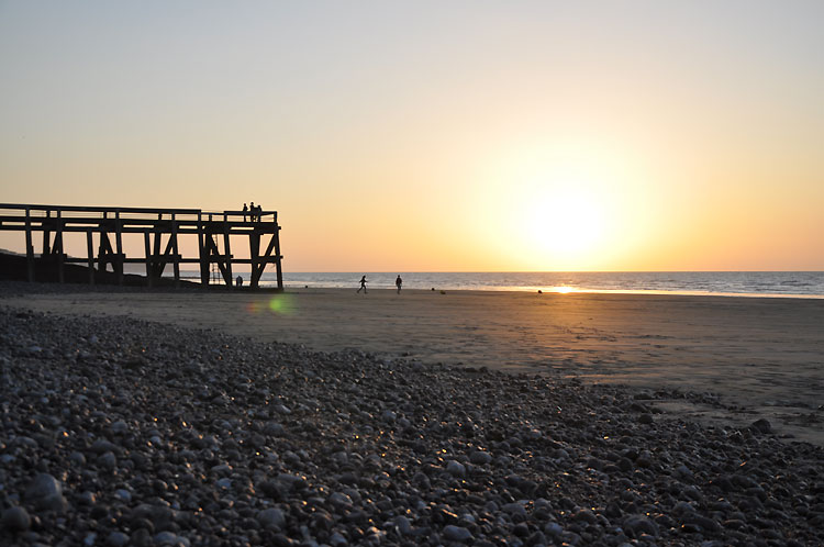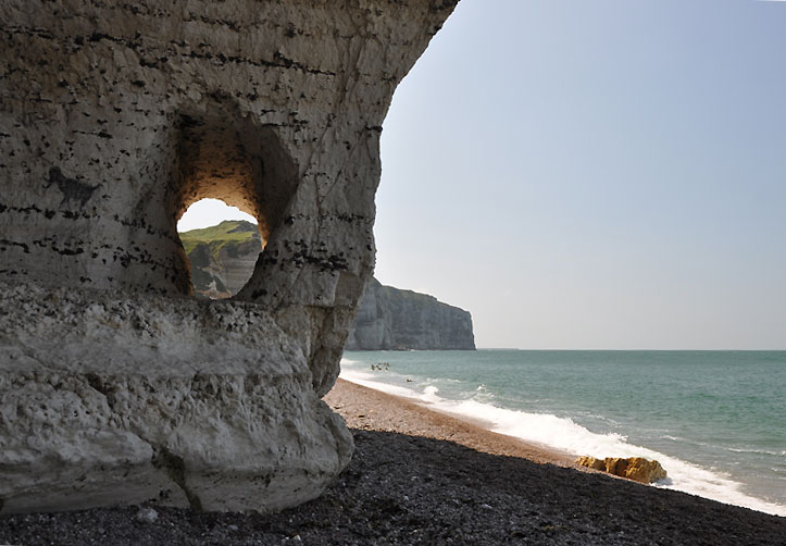 Die Strände hier sind leider Kiesstrände, erst bei voller Ebbe hat man auch sandige Bereiche, die dann aber natürlich nass sind. Wer unbedingt weite Sandstrände braucht, sollte besser nach Trouville oder Deauville fahren (südlich von Le Havre). Ansonsten sind Schwimmschuhe hier sehr nützlich (und wer seine zuhaus lässt, muss sich halt zusammenreißen ...).