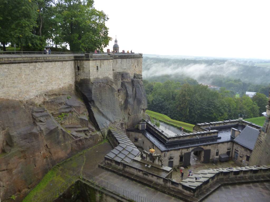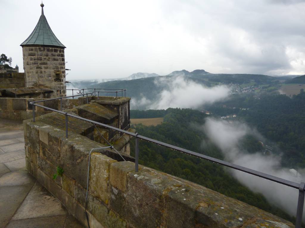 Bei der Festung Königstein kostet das Parken für eine Stunde wenig, aber man braucht ja immer mehr als eine Stunde. Und dann kostet es 6 Euro. Man kann zu Fuß hochlaufen, oder mit dem Shuttle fahren, letzteres pro Person noch einmal 2 Euro. Und dann kommt der Eintritt hinzu. Da läppert sich etwas zusammen.