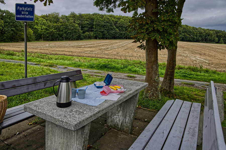 Für die Hinfahrt haben wir uns überlegt, dass wir die Route so nehmen, wie wir auch mit den Motorrädern gefahren wären, also "über die Dörfer". Ausgerechnet hatten wir uns rund 200 Kilometer, die wir fahren mussten.
