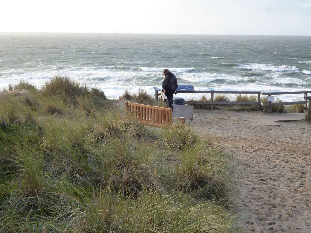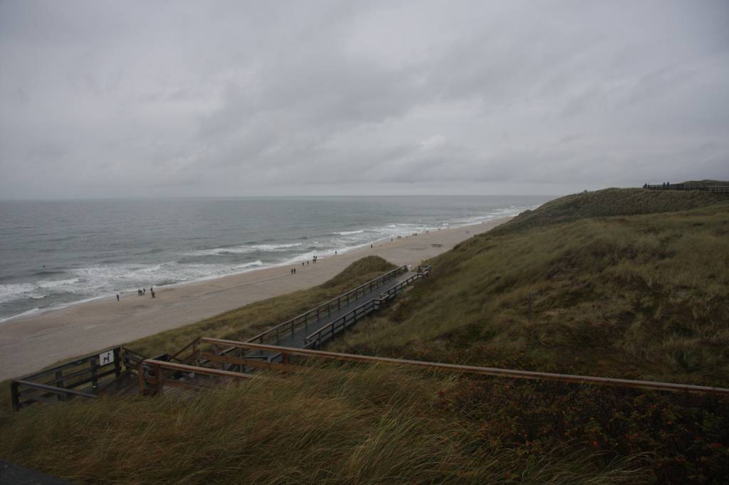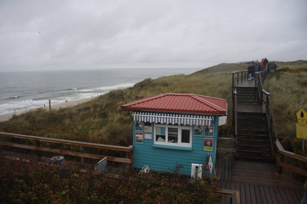 Wir fahren noch einmal nach Wennigstedt und schauen dort über die Dünen. Hier ist deutlich mehr los als im Gebiet um Hörnum, trotz Regen. Es gibt hier auch einen Holzstegweg auf den Dünen.
