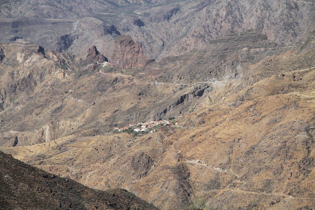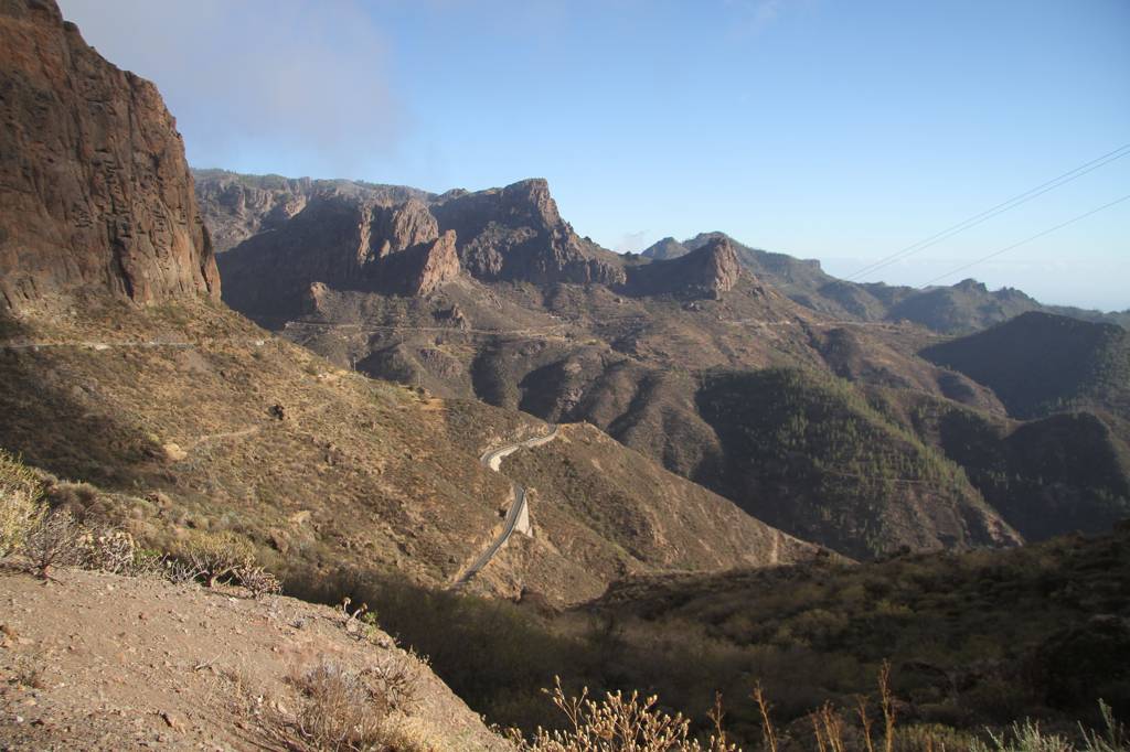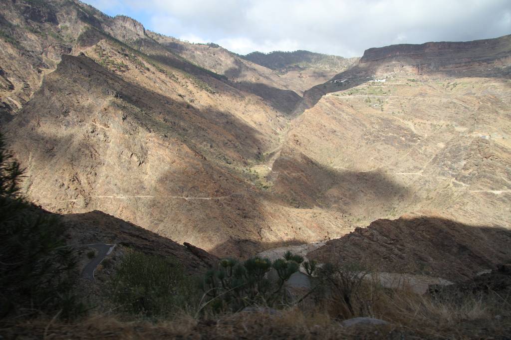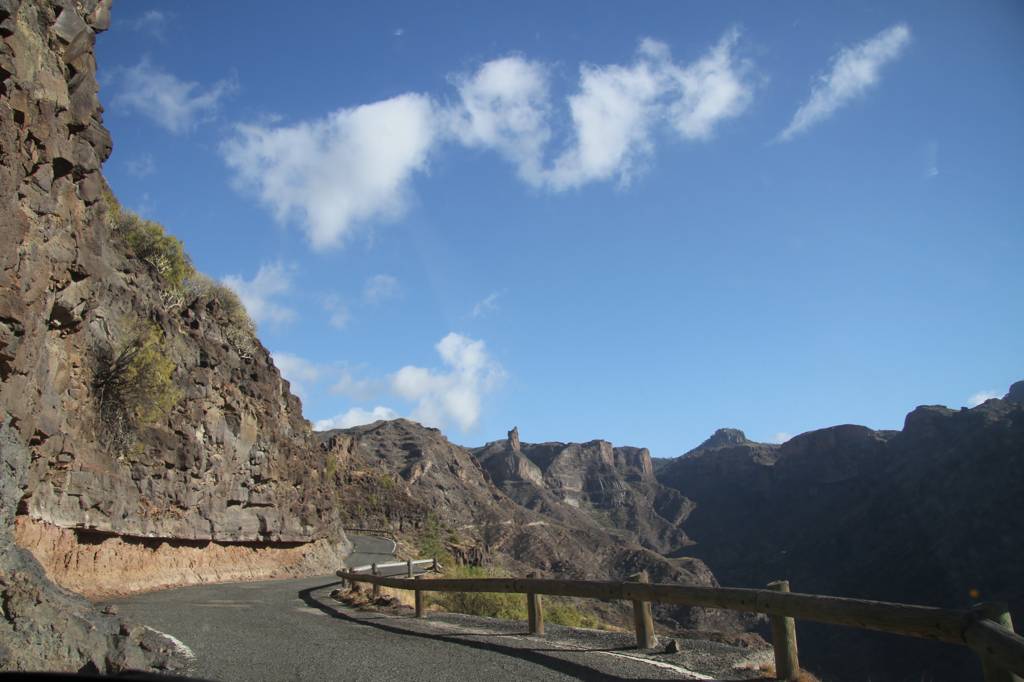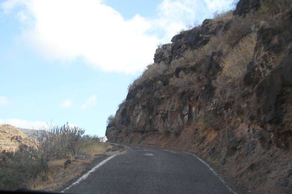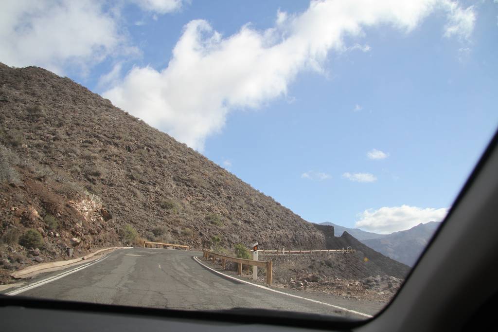 Dann weiter mit der GC 210, die in La Aldea anfängt, wobei die Durchfahrt von La Aldea ziemlich verwirrend und eng ist. Aber letztendlich finden wir die Straße, die in Richtung Artenara ausgezeichnet ist.