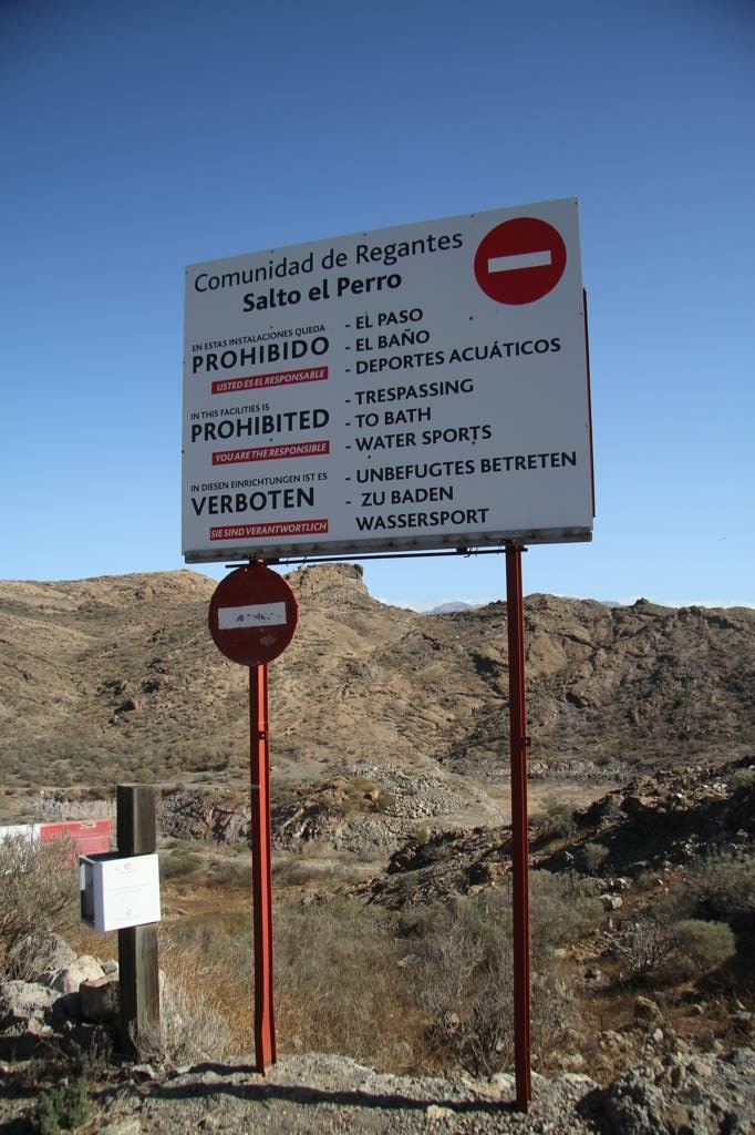 Es kommt wieder ein Stausee, Salto el Perro, mit diesem bemerkswerten Schild: Verbotenes Betreten zu Baden und Wassersport