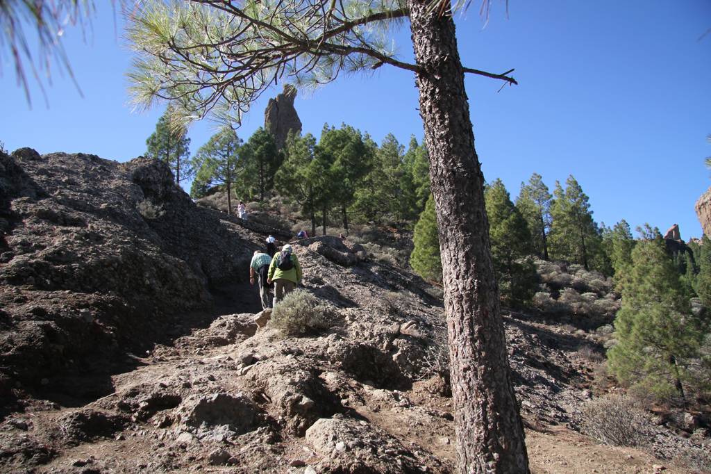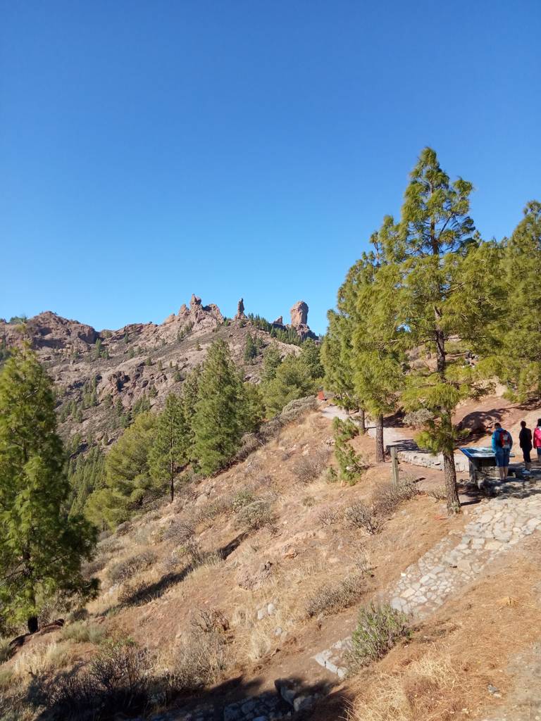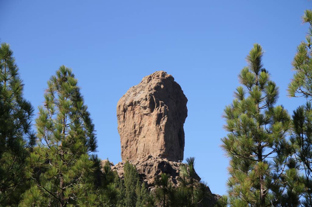 Der Roque Nublo ist der dicke Zapfen rechts.Er ist 1.803m hoch.Übersetzt heißt der Name Wolkenfels