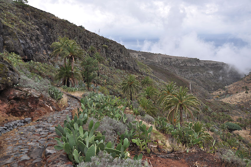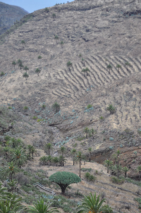 Dann immer wieder markante Felsen, schroffe Berghänge, tief eingeschnittene Täler, Terrassenabau an den Steilhängen, Palmen, Kakteen - hach, La Gomera ist wirklich eine Perle und nun wohl unsere neue LieblingsKanareninsel (es fehlen uns noch La Palma und El Hierro).