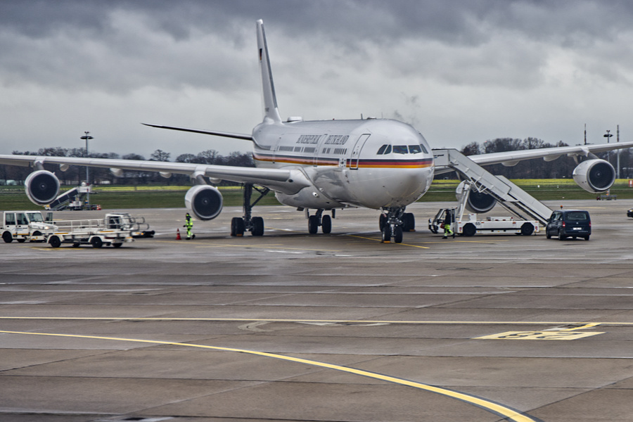 Dann flogen wir los. Auf dem Vorfeld stand ein Flugzeug der Bundesrepublik Deutschland. Schade, ich habe es zu spät gesehen, daher nur ein unscharfes Foto. In München stieg ich um, trotz Verspätung vom ersten Flug hatte ich genügend Zeit zum Unsteigen.