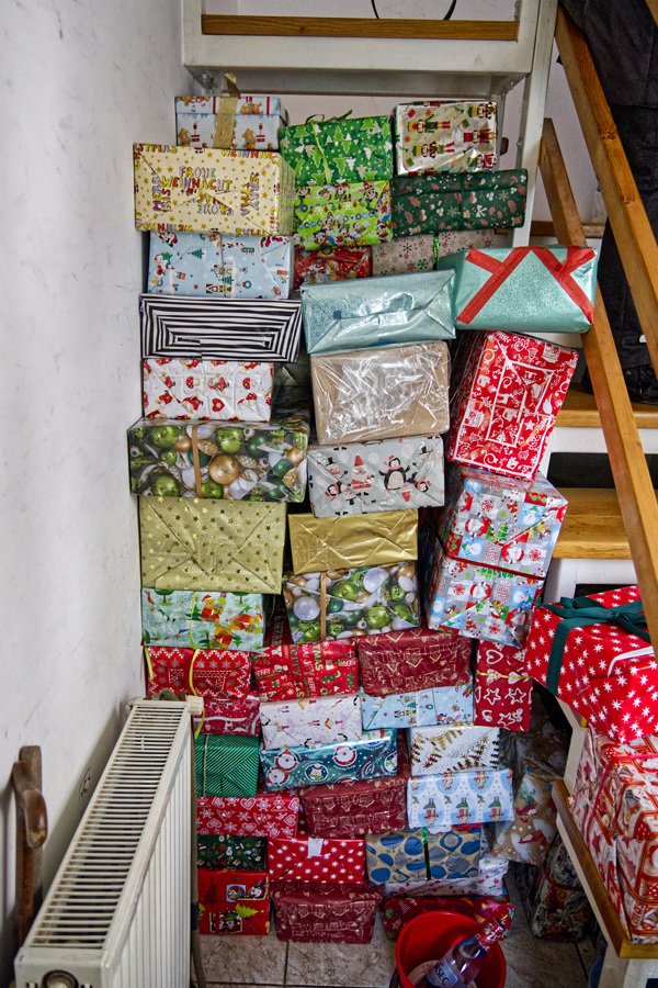 Friedrich brachte mich am 1.12. zum Flughafen nach Hannover. 2 große Koffer hatte ich mit, es gab so allerlei, was ich mitgenommen habe, neben ein paar Geschenken, Stollen, Leckerlis für Hund und Katze, vegetarische Lebensmittel und natürlich viele gut erhaltene Kleidungsstücke und viele gestrickte Schals, die ich schon im letzten Jahr bekommen hatte.