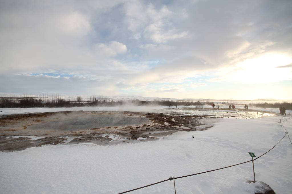 Als wir auf dem Parkplatz beim Geysir ankommen, fegt uns ein unverstellbar starker und schneidender Wind ins GEsicht. Es ist richtig ekelig und man hat binnen Sekunden das Gefühl, die Finger fallen gleich ab