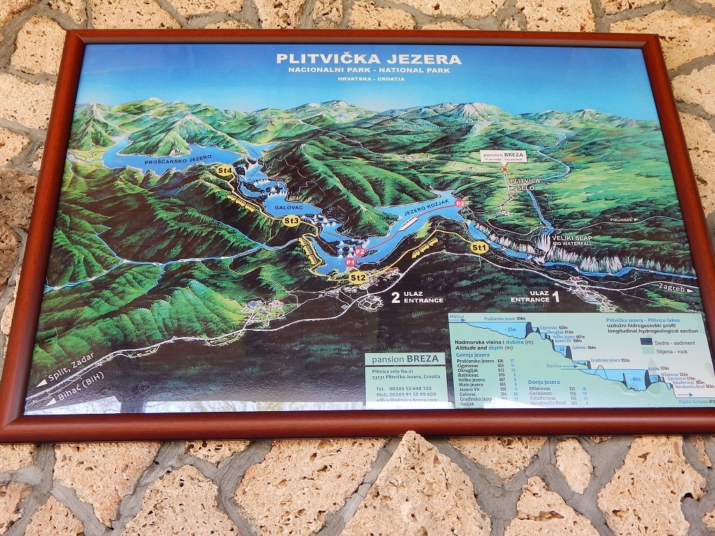 Wir hatten uns für drei Tage in Plitvica Selo ein schönes Zimmer bei einem sehr netten Ehepaar gebucht. Der erste Tag war der Anreisetag und noch nicht für einen Rundgang an die Seen verplant. Wir packten zuerst einmal unsere Taschen aus, anschl. haben uns die Gastgeber zu Kaffee und Kuchen eingeladen. Am späten Nachmittag sind wir dann noch ein Stück weit gelaufen und haben uns die schöne Landschaft angeschaut.