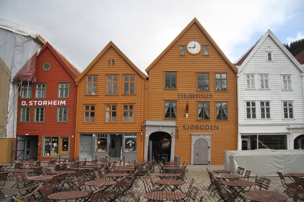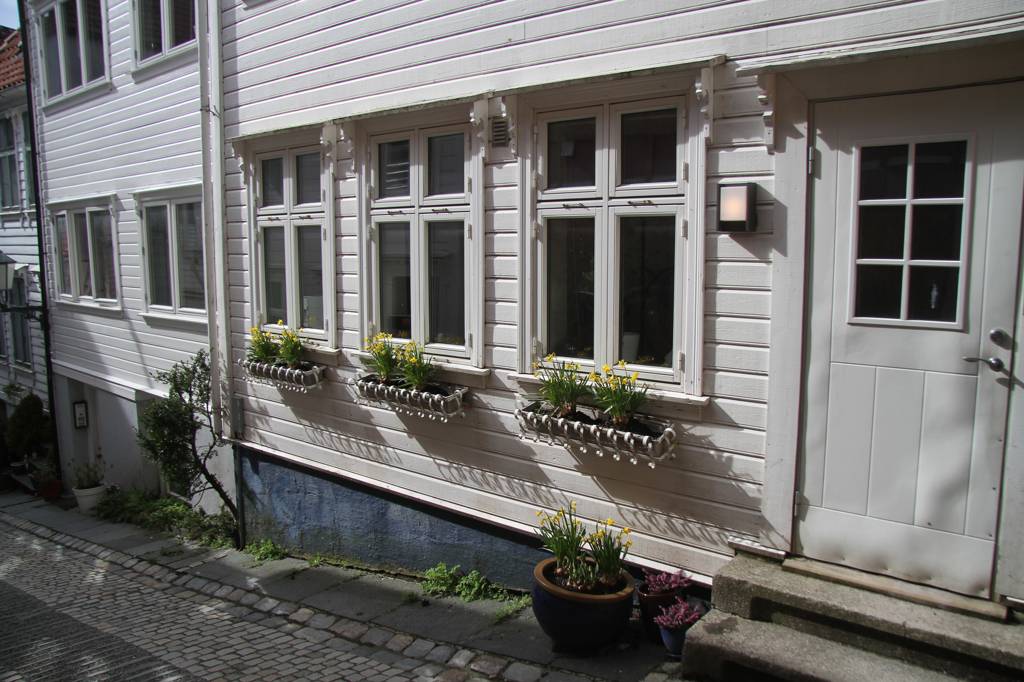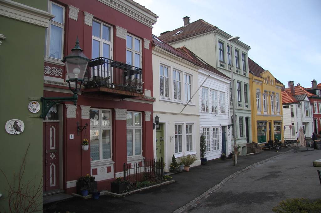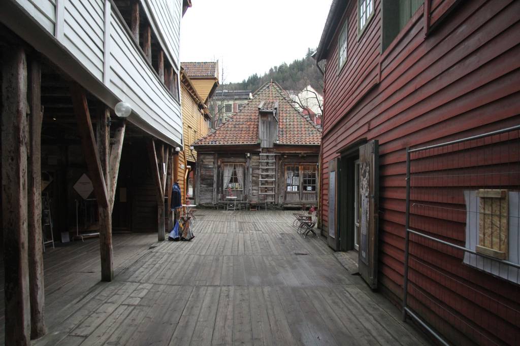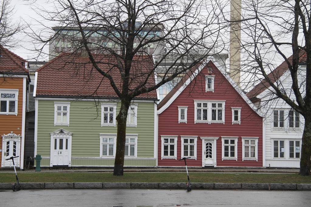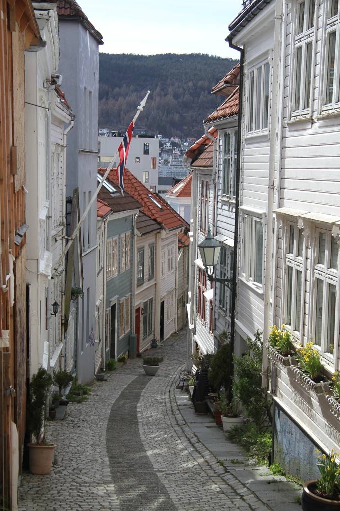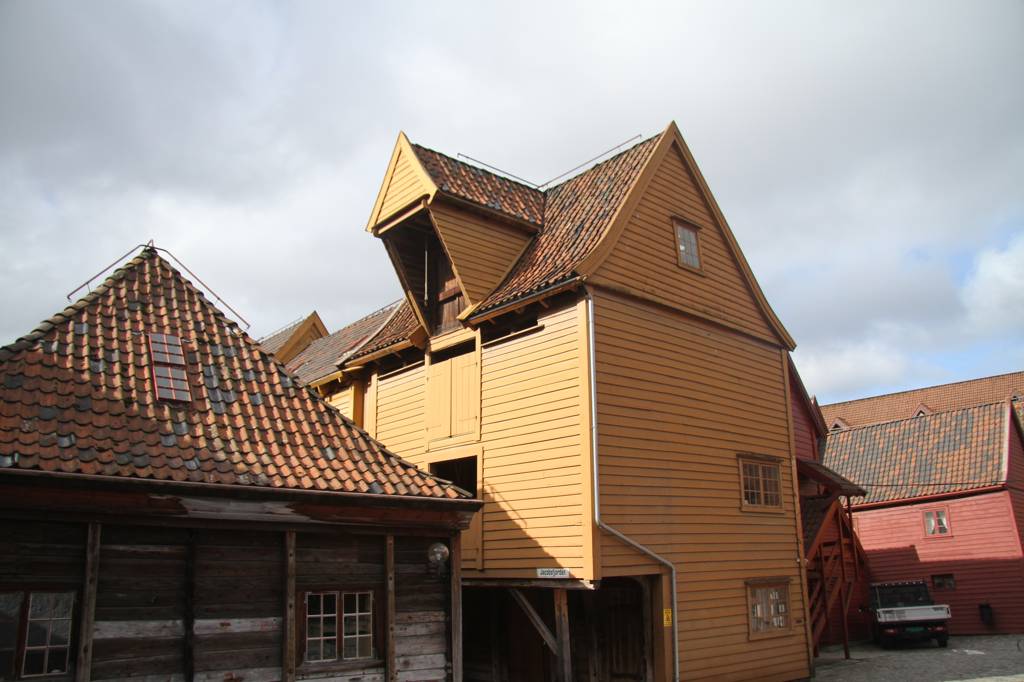 Nun aber geht es erst einmal ins Hanseviertel Bryggen - unterwegs wieder schöne Holzhäuser