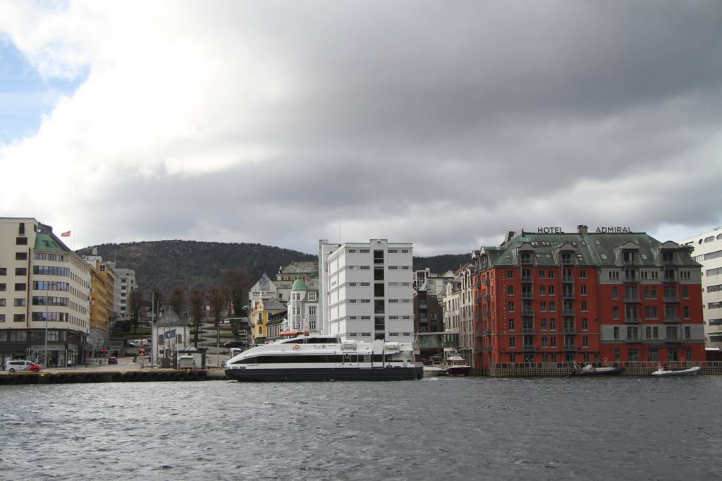 Zur anderen Seite wieder der Hurtiglinienterminal im Gegenlicht. Heute scheint es kein Schiff zu geben, denn sonst hätte es jetzt da liegen müssen