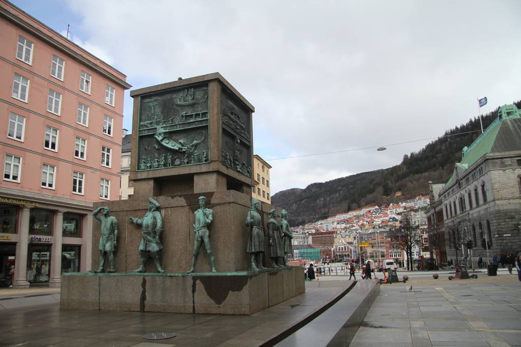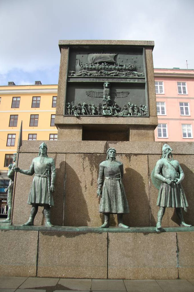 WIr kommen zu diesem Denkmal und rätseln, was es darstellen soll. NIrgends ein Hinweis und in dem Führer vom Flughafen finden wir auf die Schnelle auch nichts. Beim genauen Anschauen stelle ich fest, dass sind Seeleute aus verschiedenen geschichtlichen Epochen. Und jetzt lese ich gerade im Internet, dass ich Recht hatte. Es ist das norwegische Nationaldenkmal für die Seefahrt und zeigt norwegischen Seefahrer von der Wikingerzeit bis heute. DIe WIkinger sehen echt supergrimmig aus