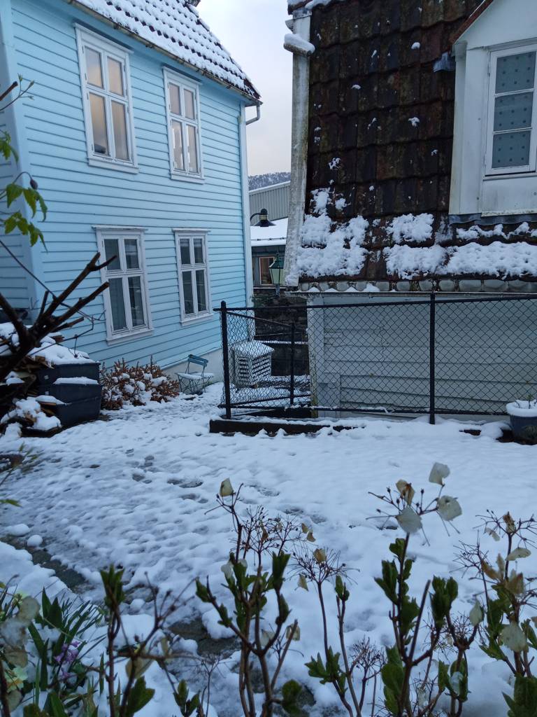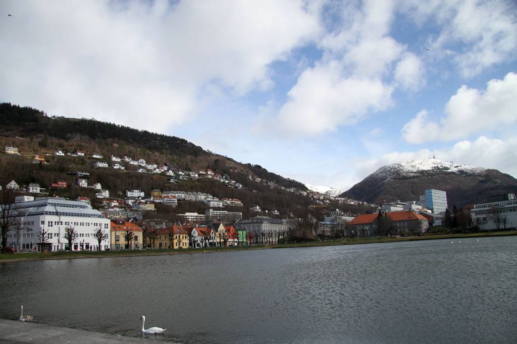 Ihr seht, auf den Bergen liegt noch Schnee, aber hier unten in Bergen blüht alles wie zuhause
