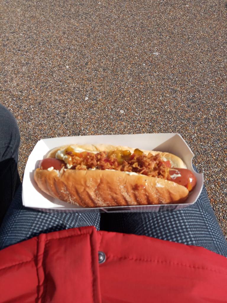 Wir kommen an einem Wurststand vorbei - Du meine Güte, soviele unterschiedliche Würstchen im Brötchen habe ich noch nie gesehen. Preis in der Regel 65 NOK, also gut 6,50 Euro
