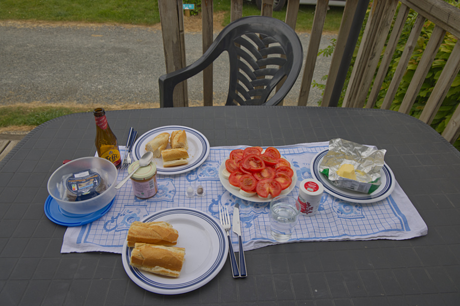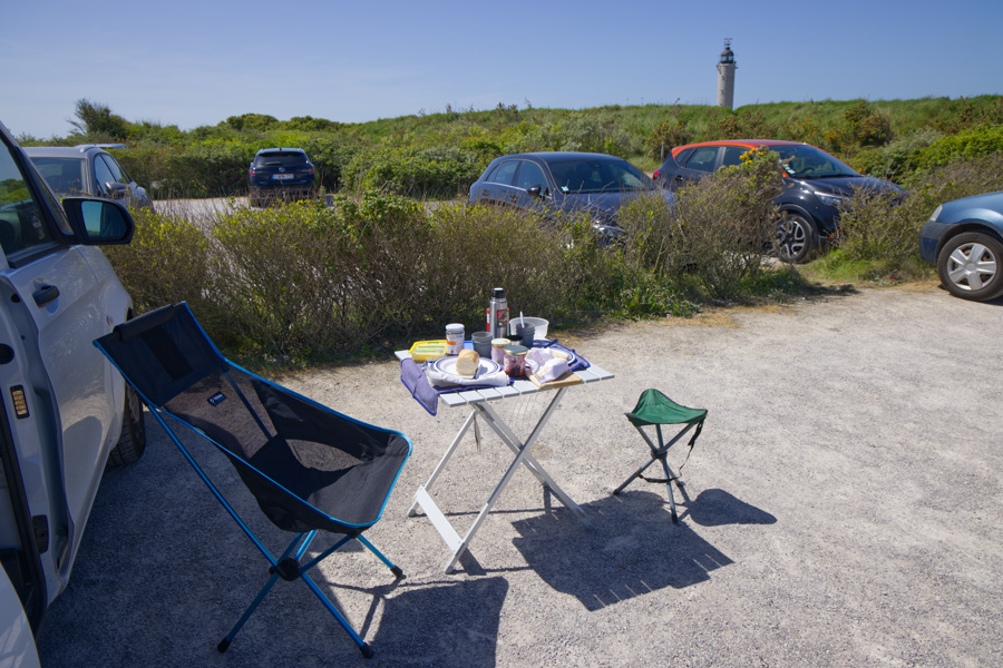 Auf dem Parkplatz stärkten wir uns zunächst, leider hatten wir keinen besseren Picknickplatz gefunden. Wir hatten uns im Ort frisches Baguette gekauft und so gab es ein zünftiges 2. Frühstück.