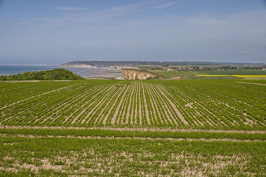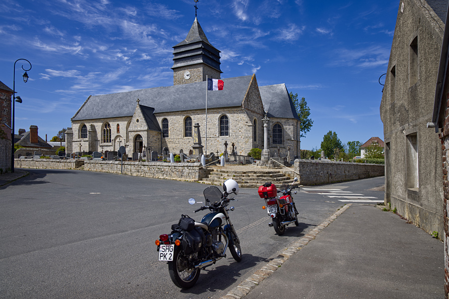 Sotteville-sur-Mer liegt nur wenige Kilometer von Veules-les-Roses entfernt und der Ort hat noch nicht einmal 400 Einwohner. Wir halten kurz an der Kirche Notre-Dame (1252), bei dem Boulanger (Bäckerei) hatte Friedrich am Vormittag Baguette und Apfeltaschen gekauft.