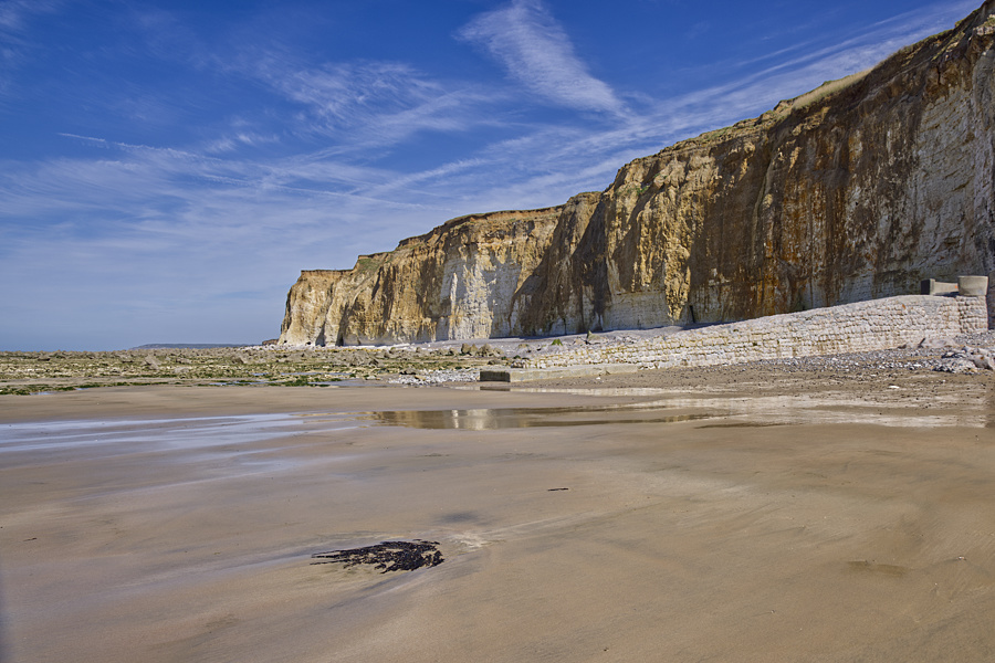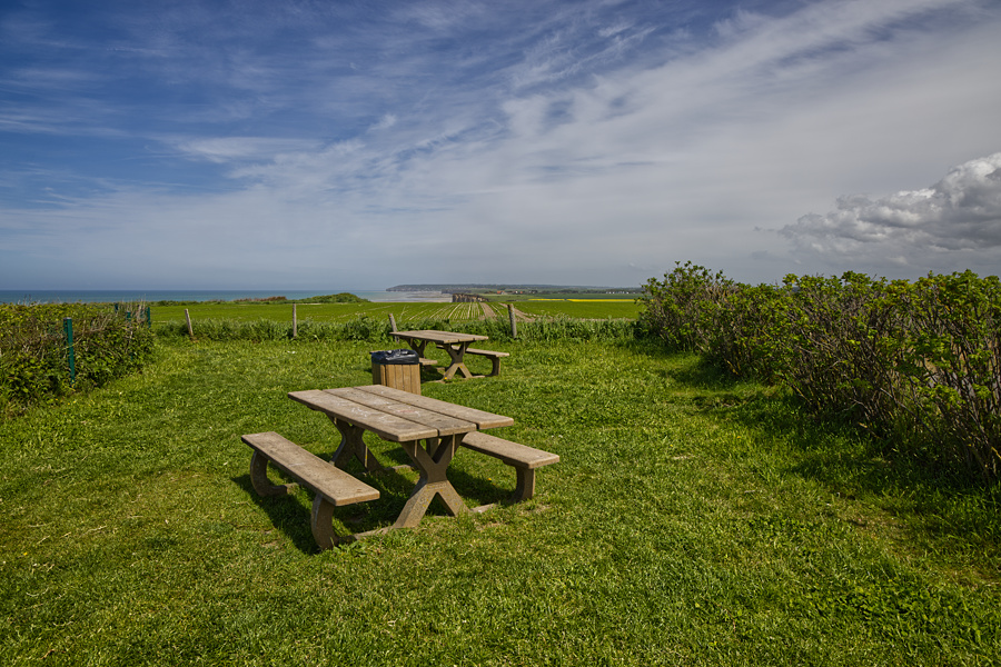 Langsam gehen wir zurück, aber noch nicht ganz runter. Wir machen bei den 2 Bänken eine Pause und genießen noch einmal den Blick auf die Alabasterküste, Silke, dort habt ihr auch immer gesessen, oder?