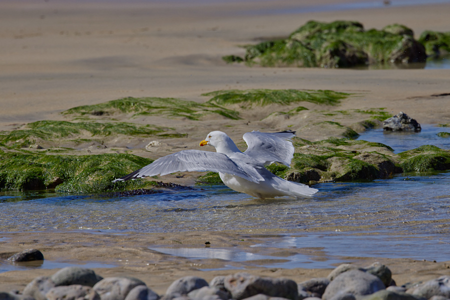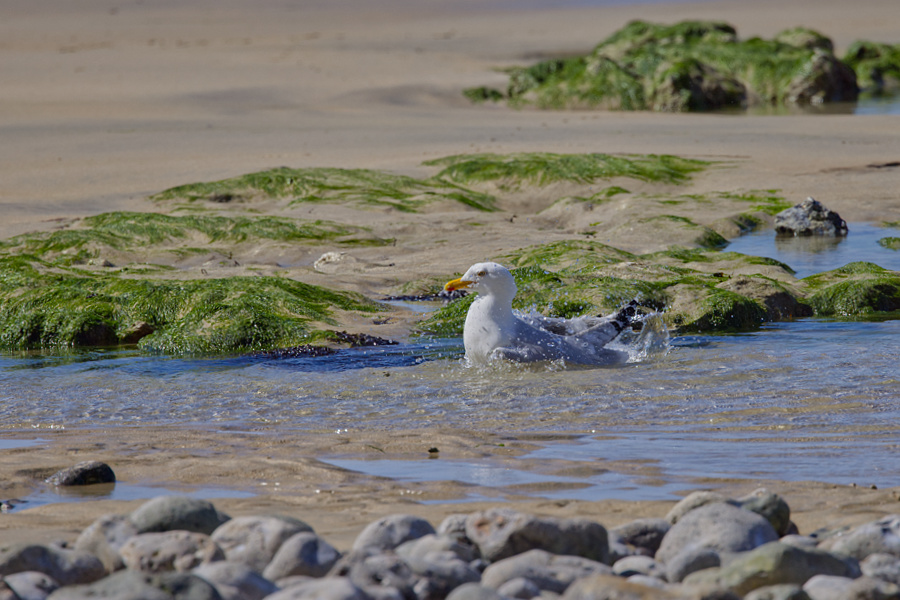 Da der Campingplatz auf der Nordklippe liegt, sind wir fast immer die Treppen dort hinunter zum Strand gegangen. Dieses Mal wollten wir aber zu der gegenüberliegenden Seite hochlaufen. Dort waren wir ja noch nie.