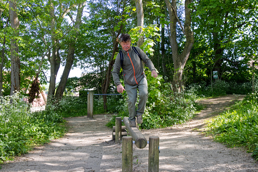 ), probiert Friedrich ein paar Fitnessgeräte aus. Dann erreichten wir eine kleine Aussichtsplattform. Auch hier diese Stelle überflogen 1930 Bellontes und Costes. -