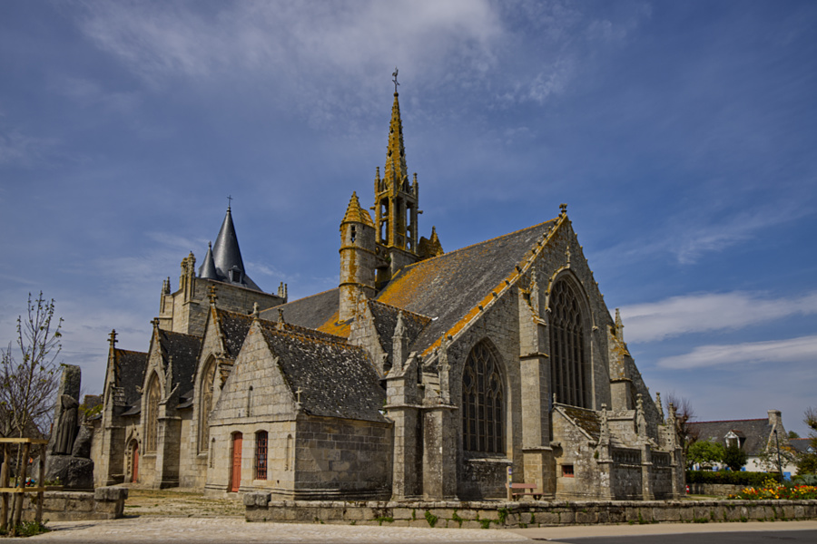 Ein letztes Mal machen wir noch einen Stop und zwar bei der kleinen Kapelle Notre-Dame de Tronoën. Hier gibt es einen Kalvarienberg (ich musste erst einmal googeln, was das bedeutet) , der Szenen aus der Bibel zeigt. Allerdings nagt der Zahn der Zeit an den gezeigten Figuren.