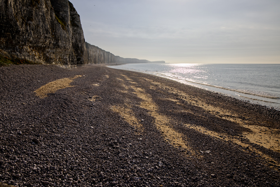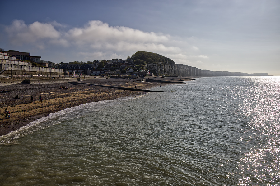 Nachdem wir uns eingerichtet und gestärkt haben, sind wir dann auf unseren ersten Erkundungsrundgang losgezogen. Über Treppen erreichen wir den Strand von Veules-Les-Roses.