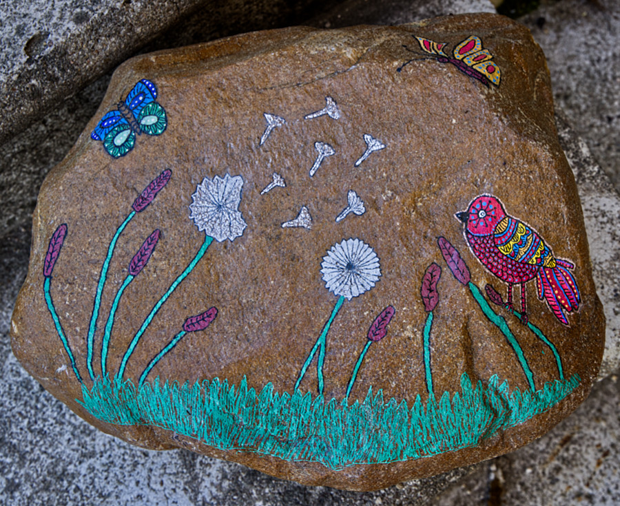 Der Stein war aber so schwer, dass ich ihn nicht bewegen konnte. Daher stellten wir einen Tisch in unser Gästezimmer, denn so lange wir Corona noch ein Thema ist, haben wir keinen Übernachtungsbesuch im Haus. So konnte ich immer wieder zwischendurch mal an diesem Stein malen.
