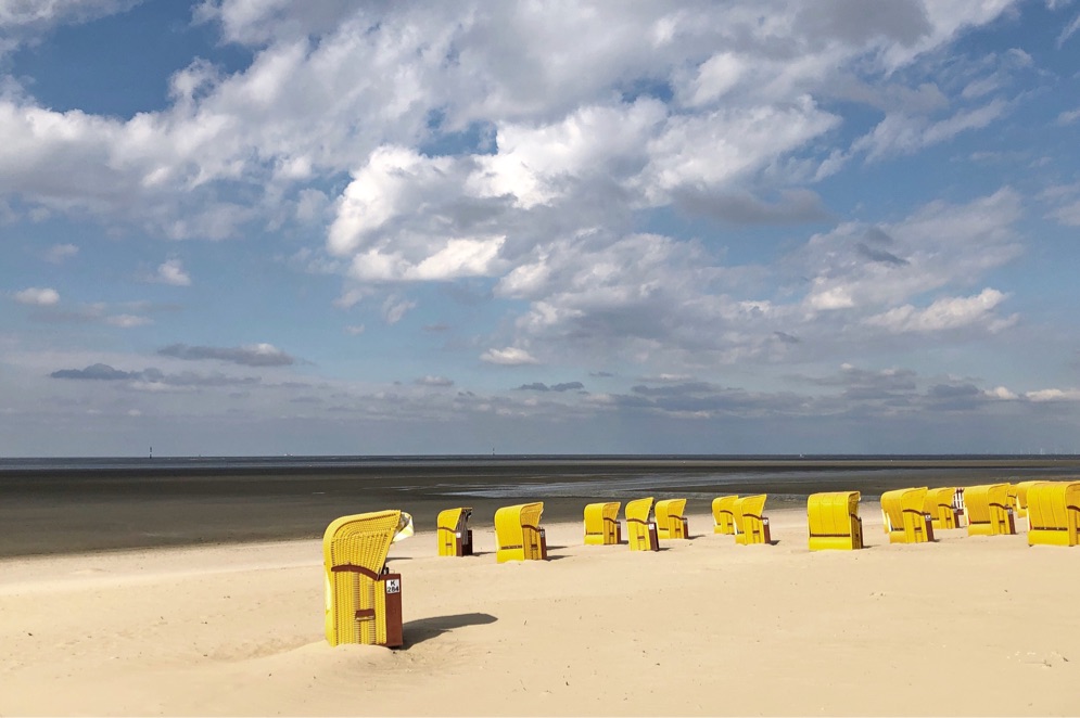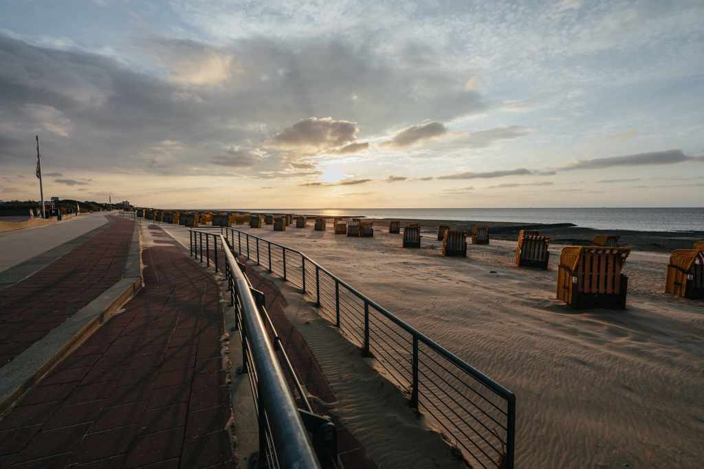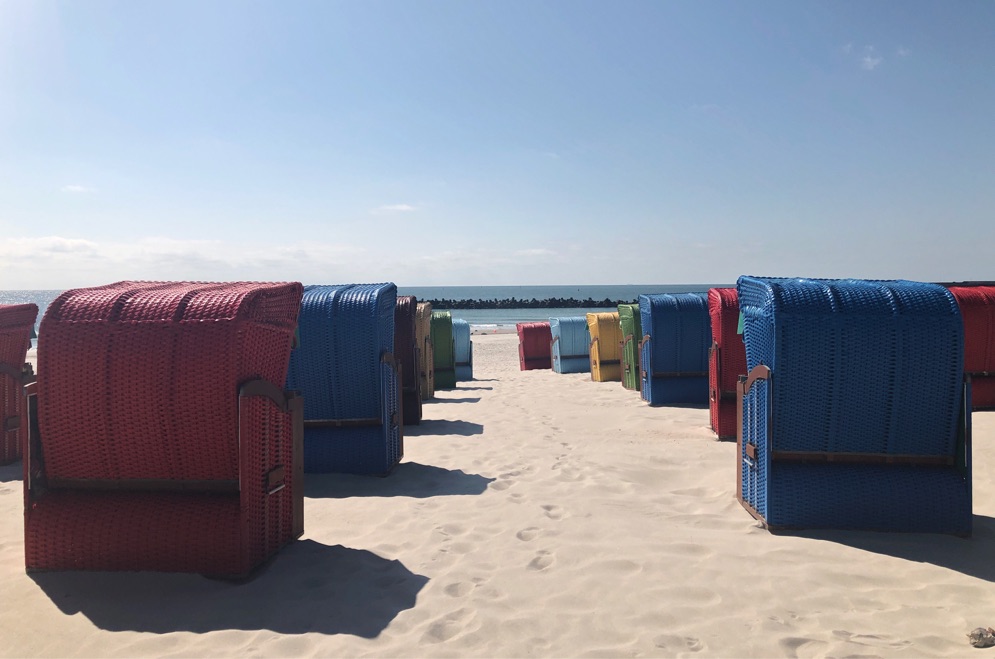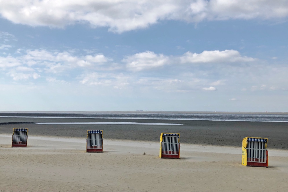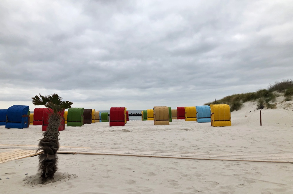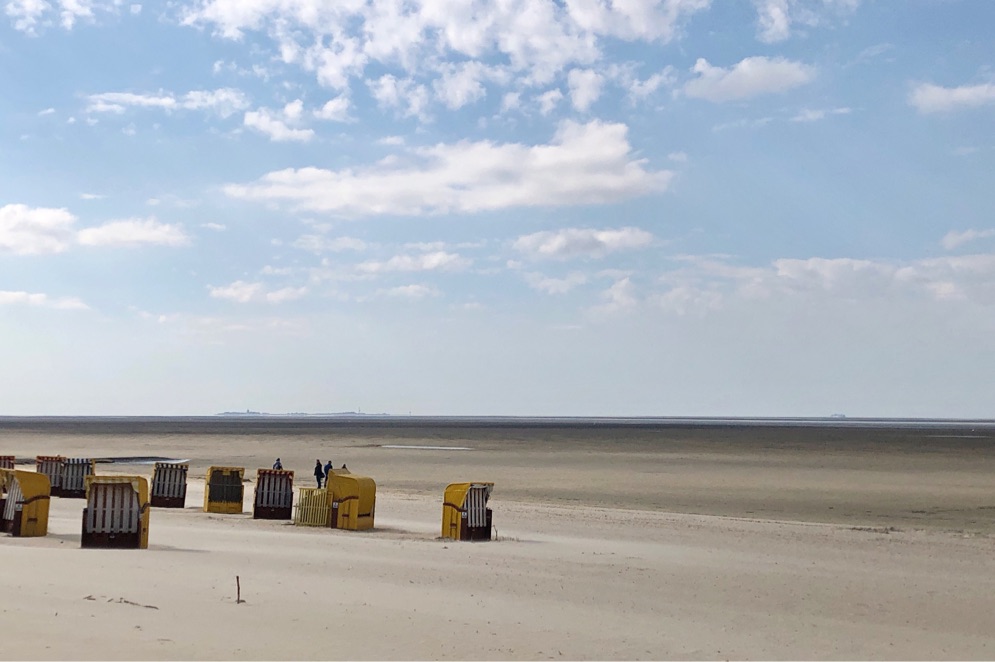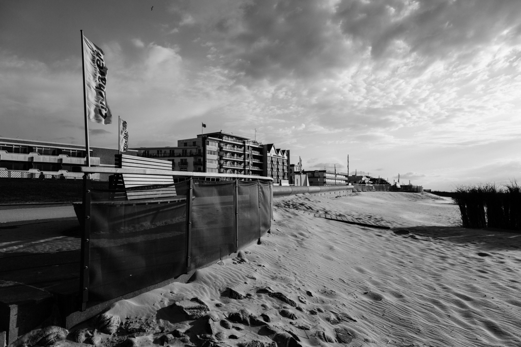Auch dort war nix los. Man fing erst an die Strandkörbe zu platzieren und passend dazu war auch mal wieder das Wasser weg.
