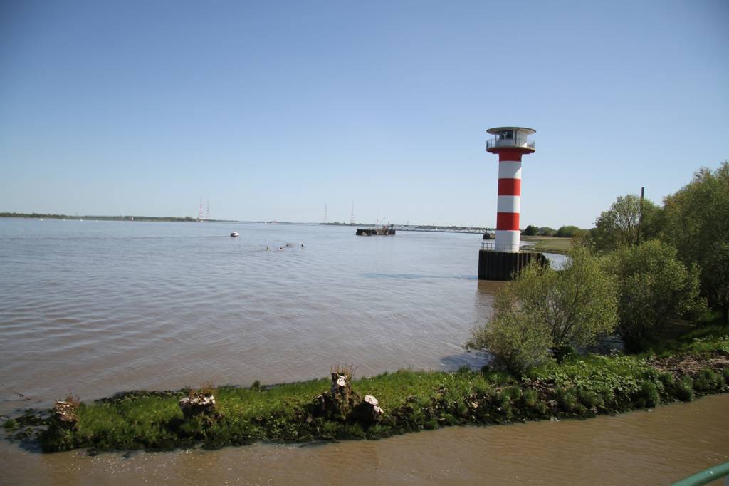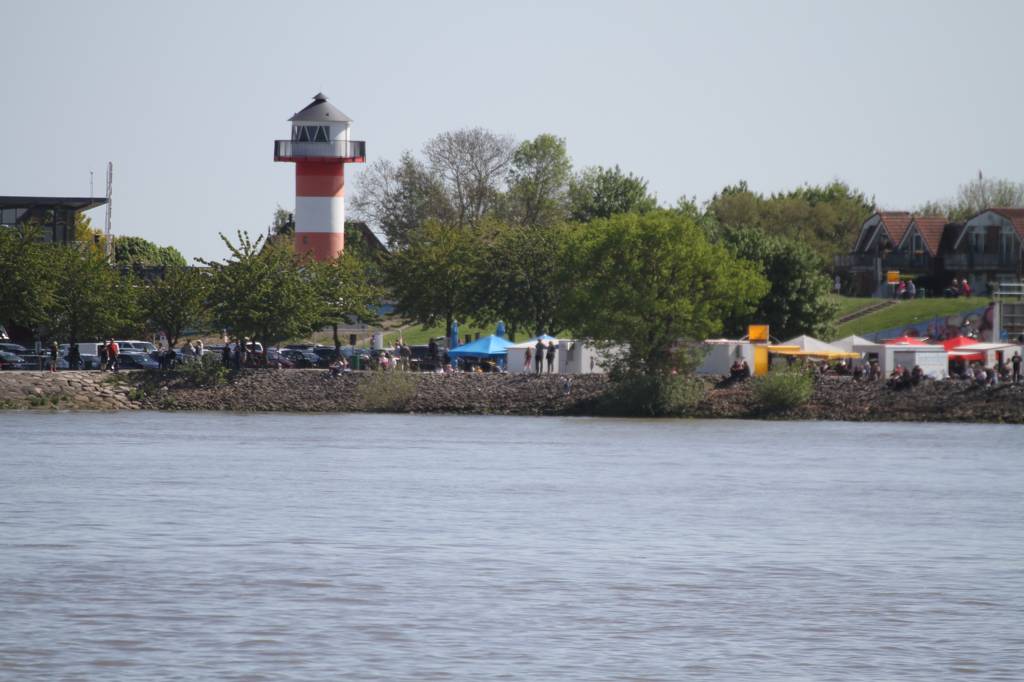 Dabei kündigt sich das Schiff mit einem extrem lauten Hupen an, wie auch bei der EInfahrt auf die Elbe