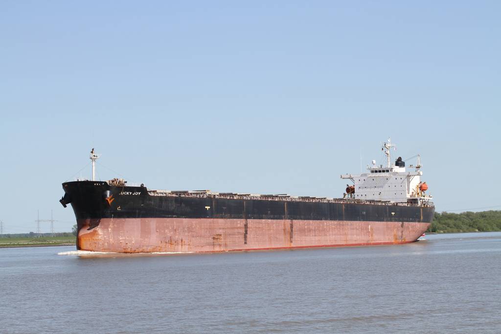 Uns kommen auch ein paar große Pötte entgegen - dieser ist leer