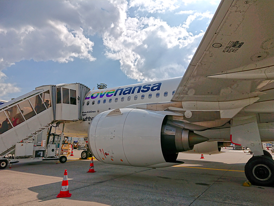 Mit über einer Stunde Verspätung flogen mit einer bis auf den letzten Platz besetzten Maschine los. Wer keine Maske aufhatte, bekam beim Betreten der Maschine eine ausgehändigt.