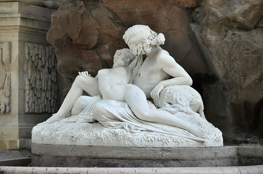 ... mit den schönen Skulpturen der Liebenden Galatea und Acis aus weißem Marmor: ![]()