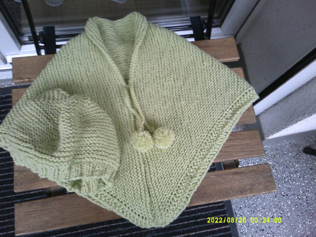 Babyponcho und Mütze,sowie ein Knubbelchen für das Urenkelkind